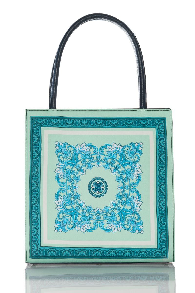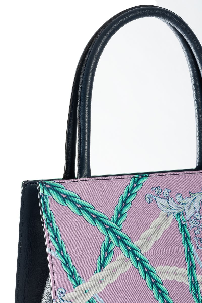 Ύφασμα 100% μετάξι με δερμάτινα χερούλια και λεπτομέρειες.
