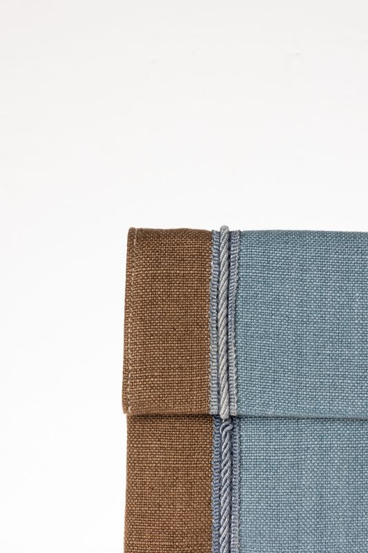 Handmade linen clutch bag with a fold-over flap.
