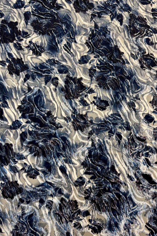 Chiffon fabric with embossed velvet design/pattern.